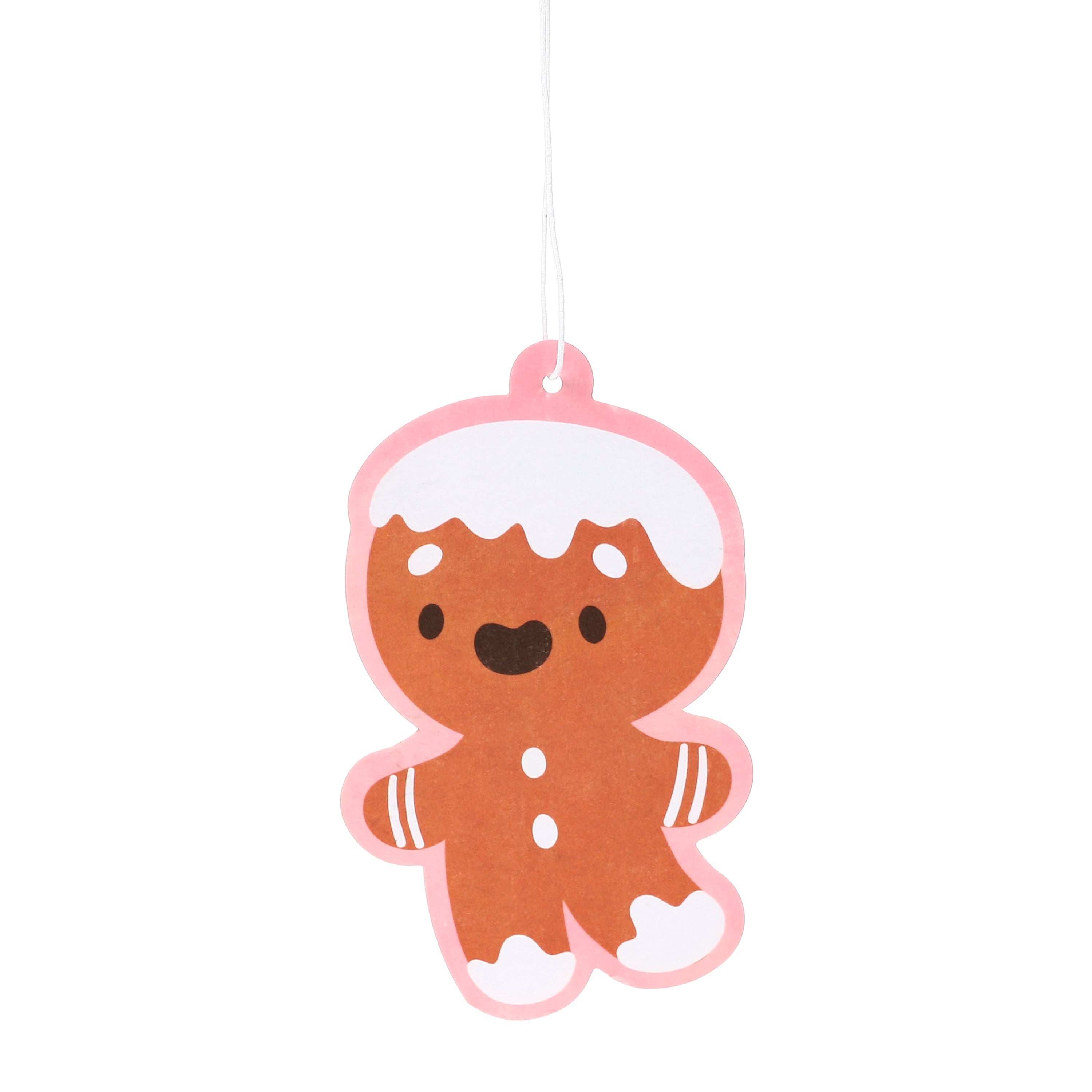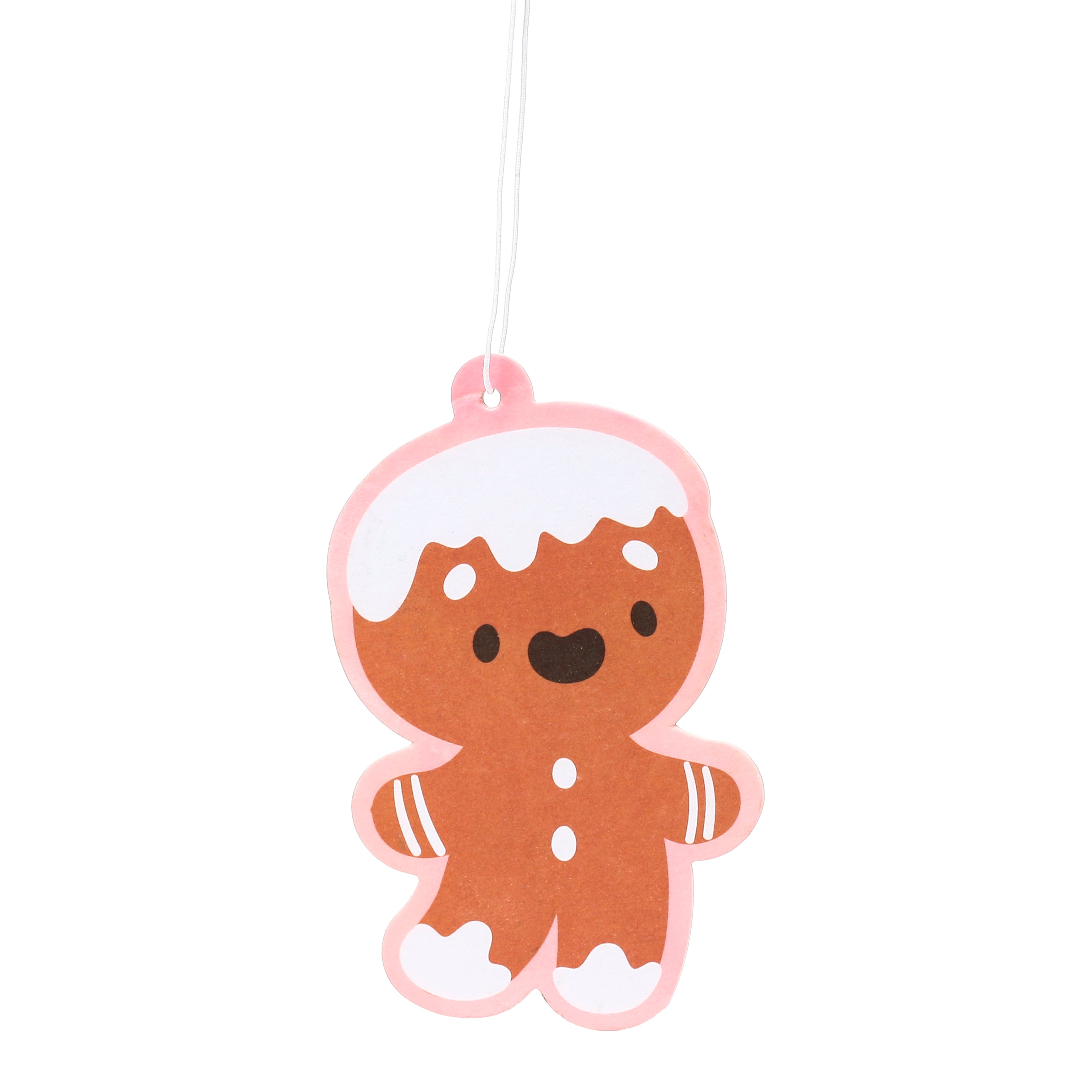• Adorable Festive Design: Brighten any space with this endearing brown gingerbread man air freshener, complete with classic white icing details and a playful pink outline. It's a whimsical decoration that truly embodies the holiday spirit.