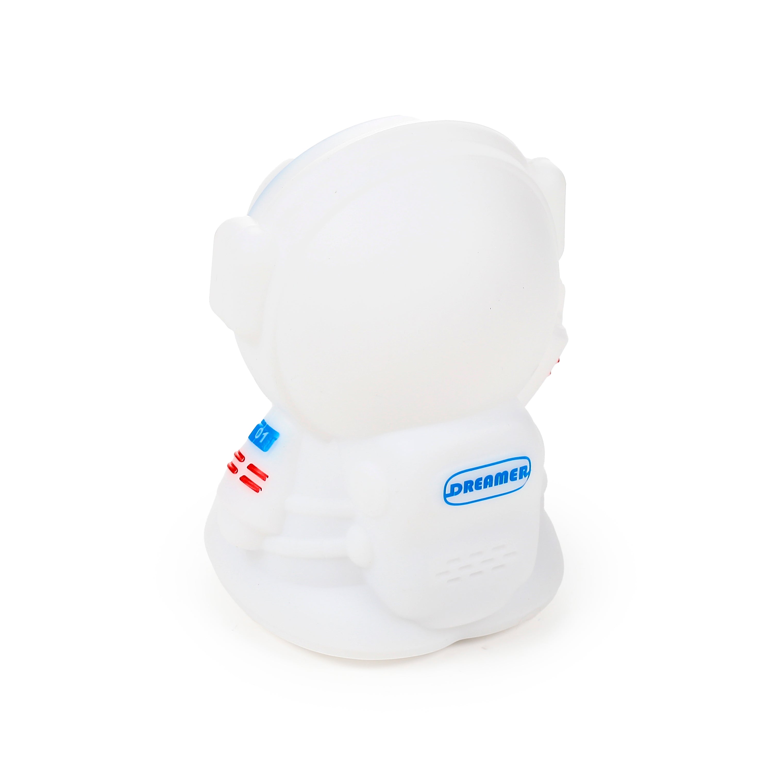 Cosmic Comfort & Design: Crafted from soft, durable silicone, this endearing white astronaut-shaped night light boasts charming blue visor trim and subtle red and blue suit detailing. Its squishy, touch-friendly surface makes it perfect for little hands to hold and cuddle, providing a comforting presence throughout the night.