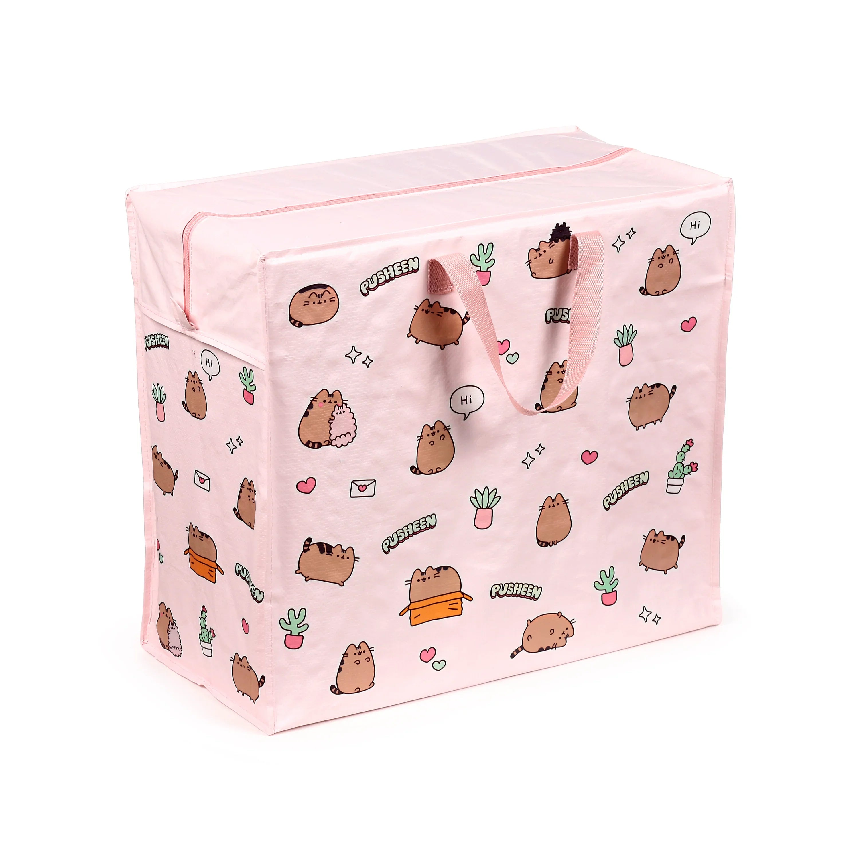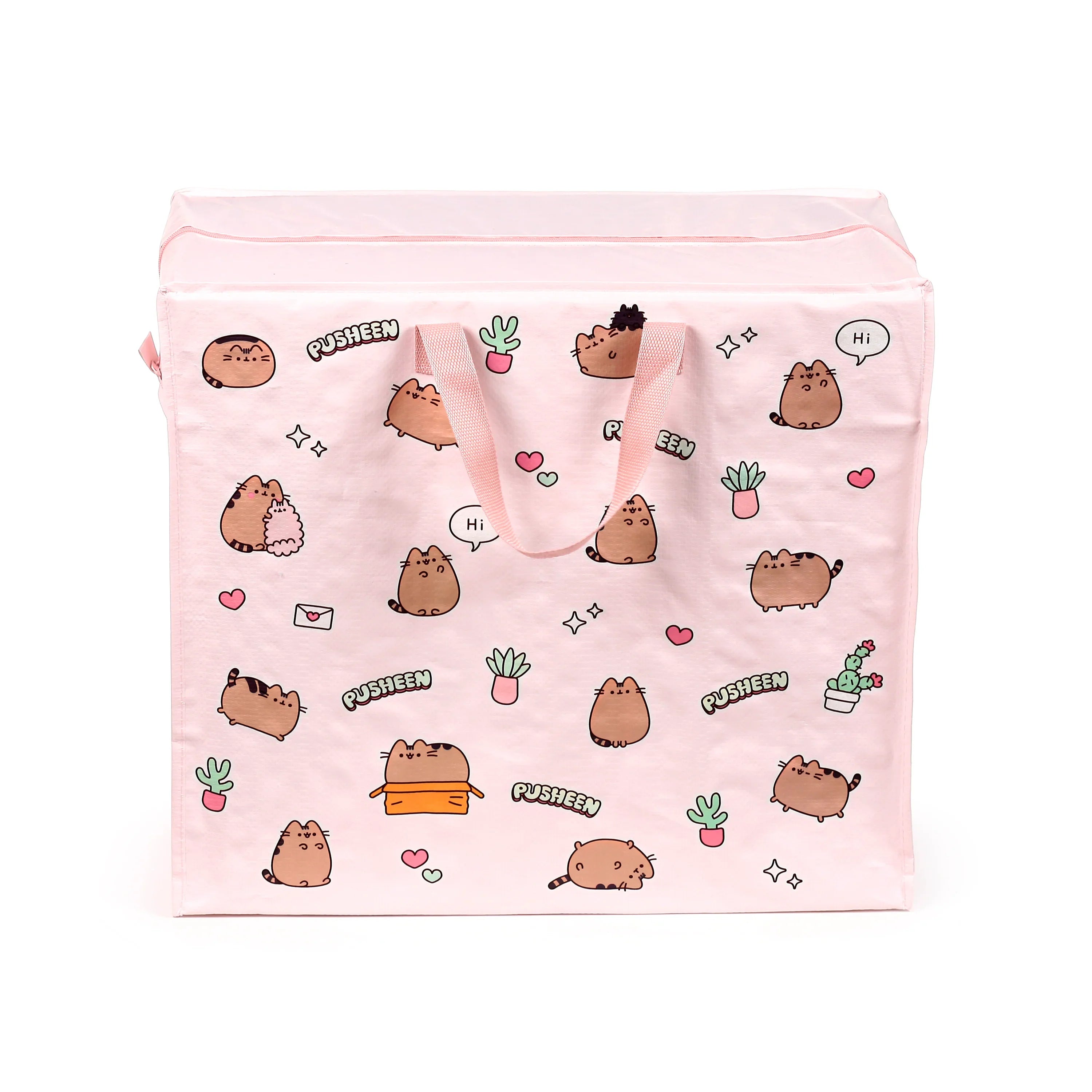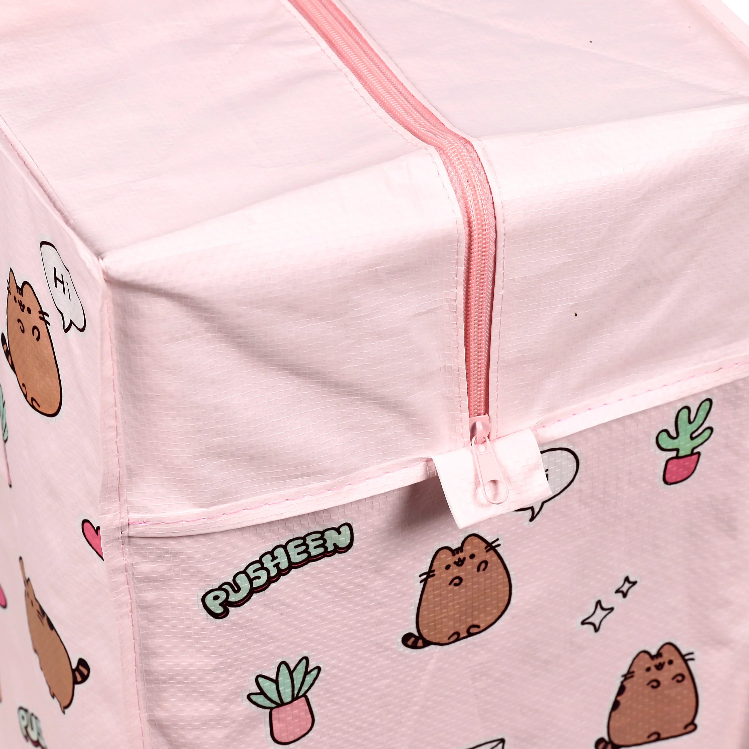 Enchanting Pusheen Design: Adorned with a vibrant, colourful pattern featuring the beloved Pusheen the Cat nestled amongst an array of cheerful potted plants, hearts, and stars, this bag brings a smile to your face while keeping your space tidy.