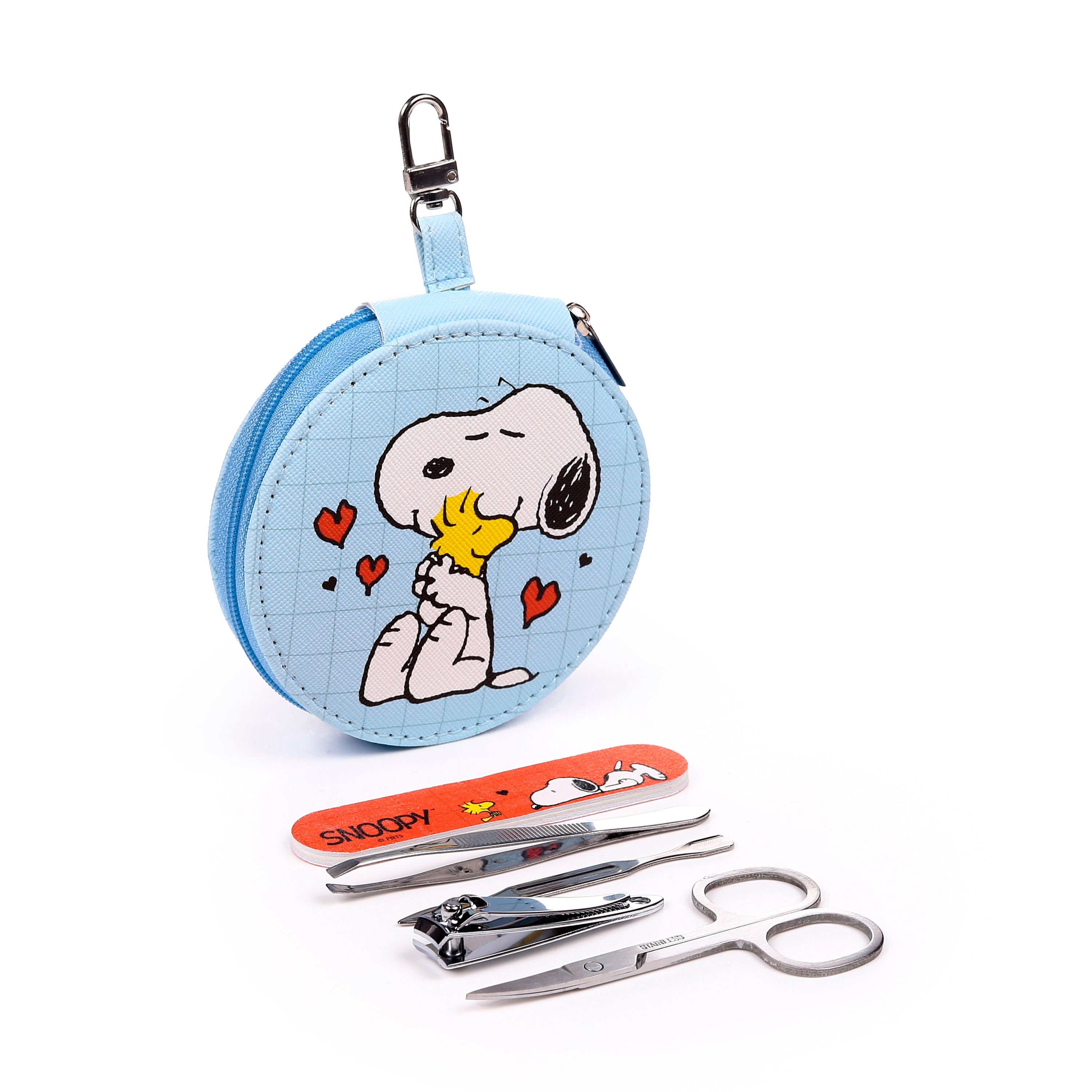 Keep your nails perfectly pampered and your spirits soaring with this utterly charming 5-piece manicure set, featuring everyone's favourite Peanuts pals, Snoopy and Woodstock! This delightful, compact kit is designed for impeccable nail care on the go, blending practical utility with irresistible character charm.