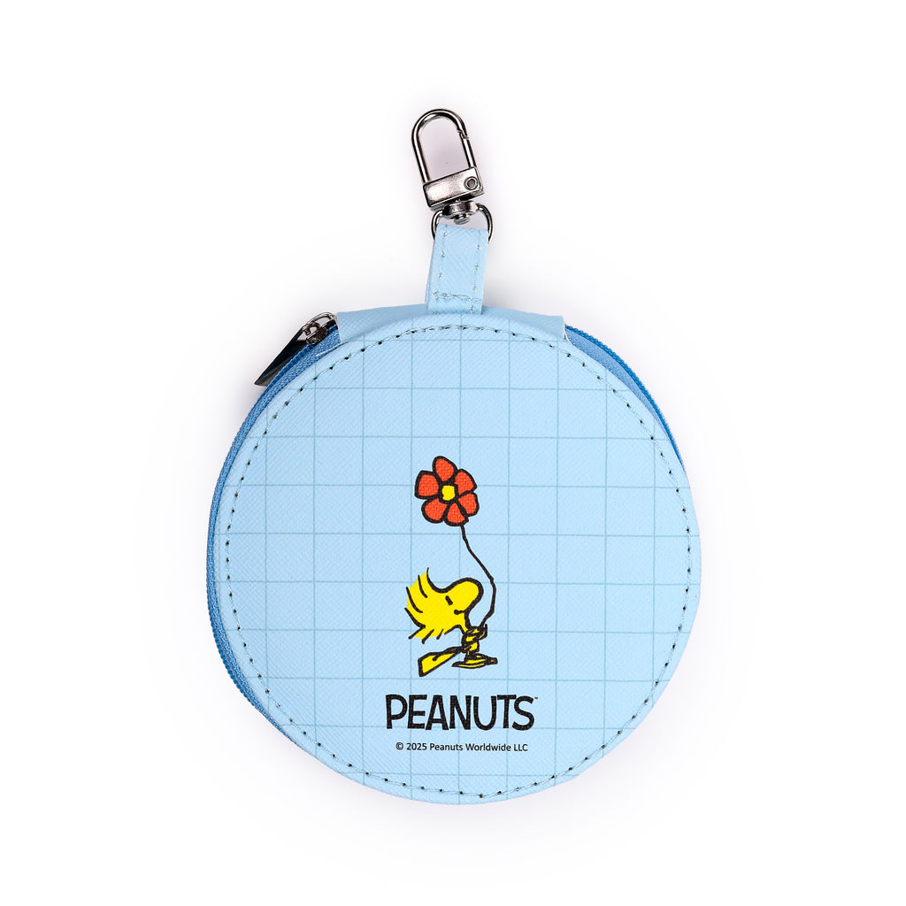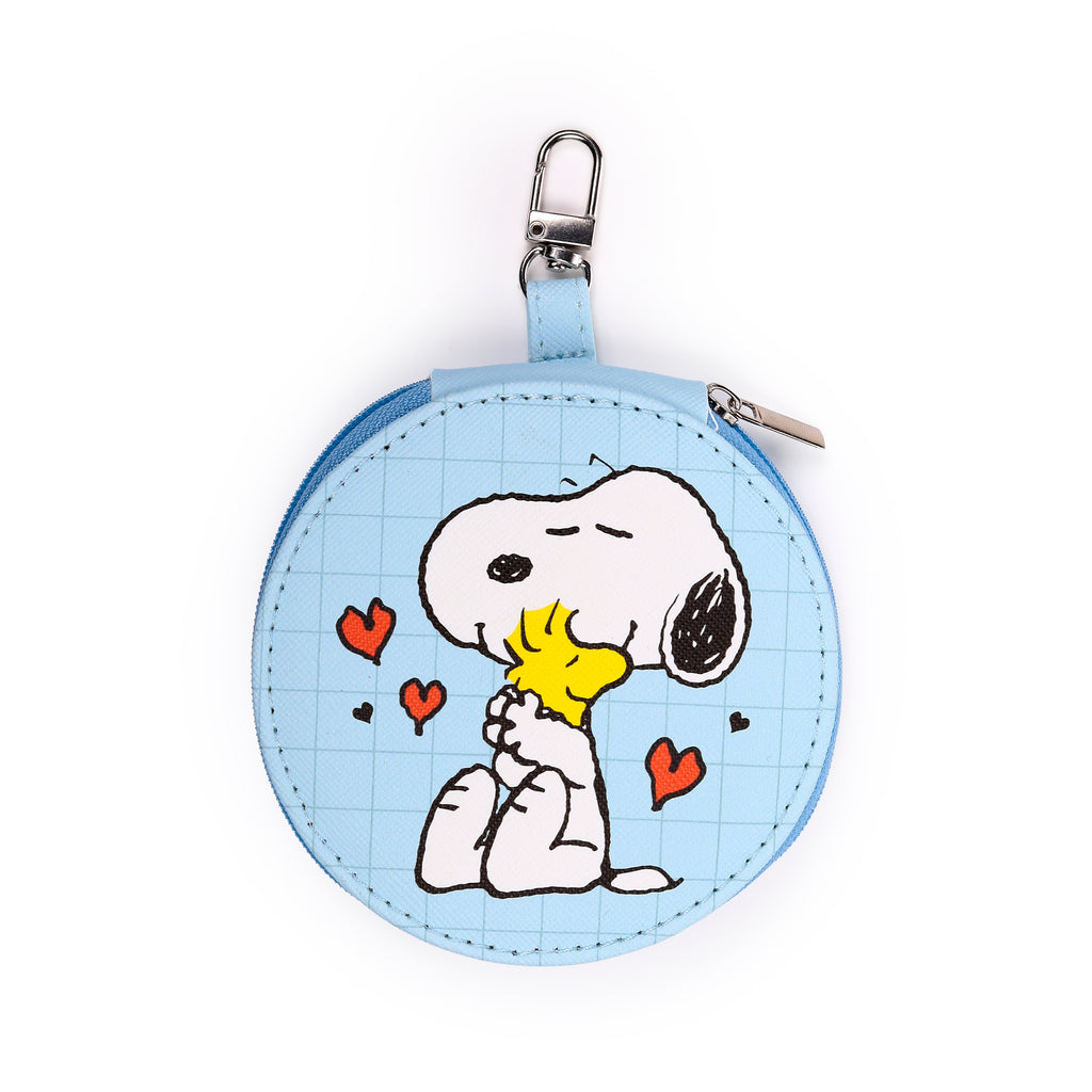 Adorable Design: Housed in a cheerful light blue, round zippered case, this set showcases a heartwarming illustration of Snoopy lovingly hugging Woodstock amidst red hearts, making every touch-up a joy.