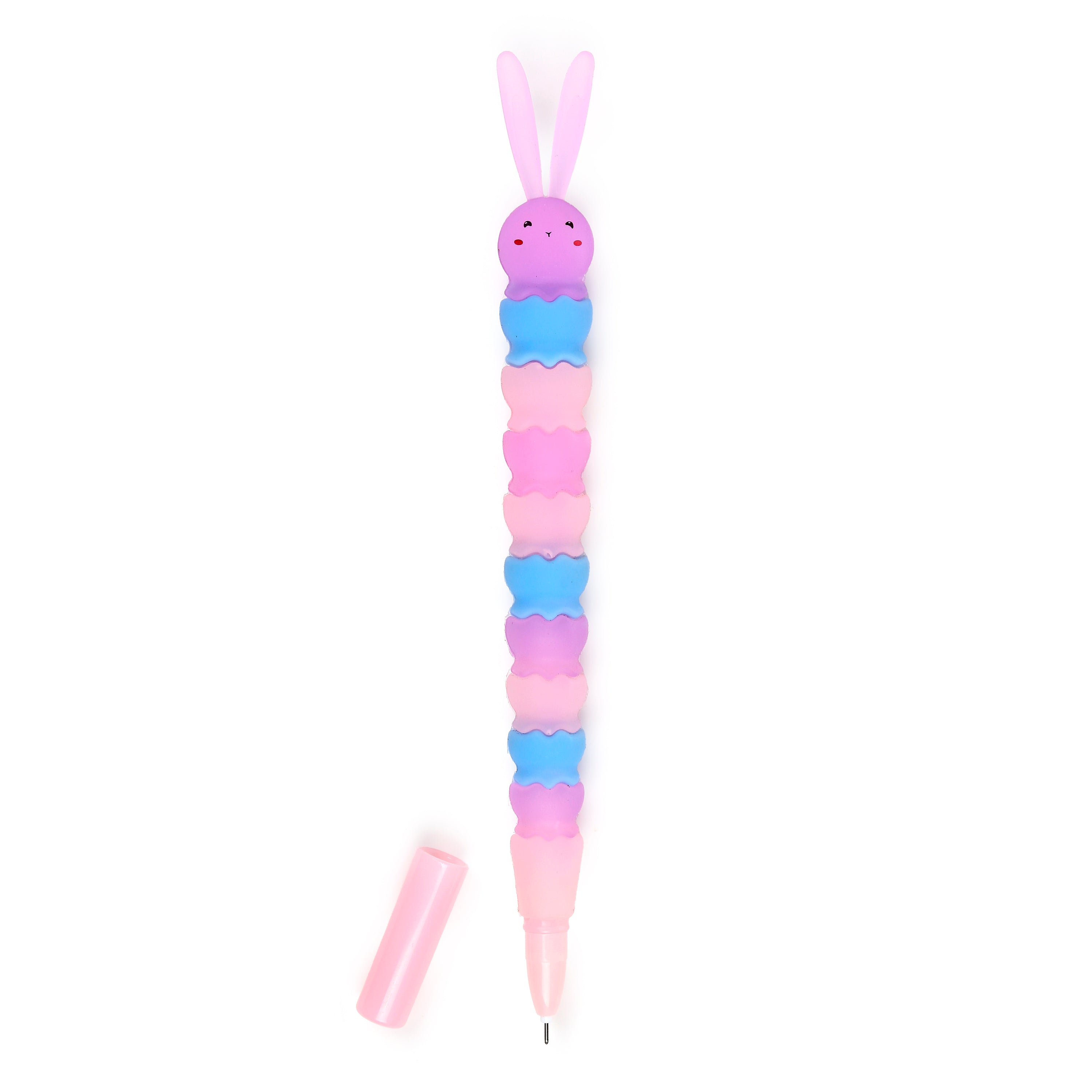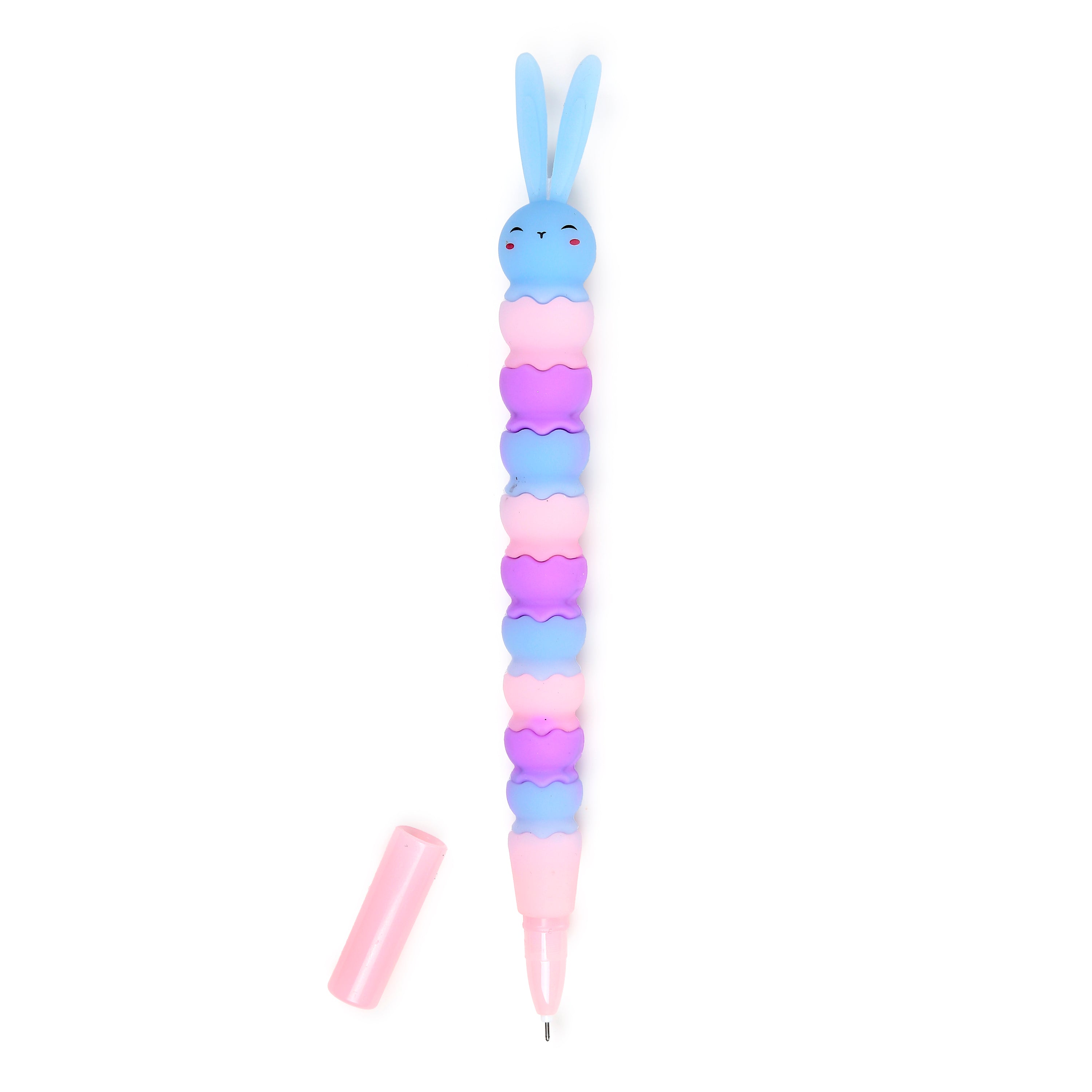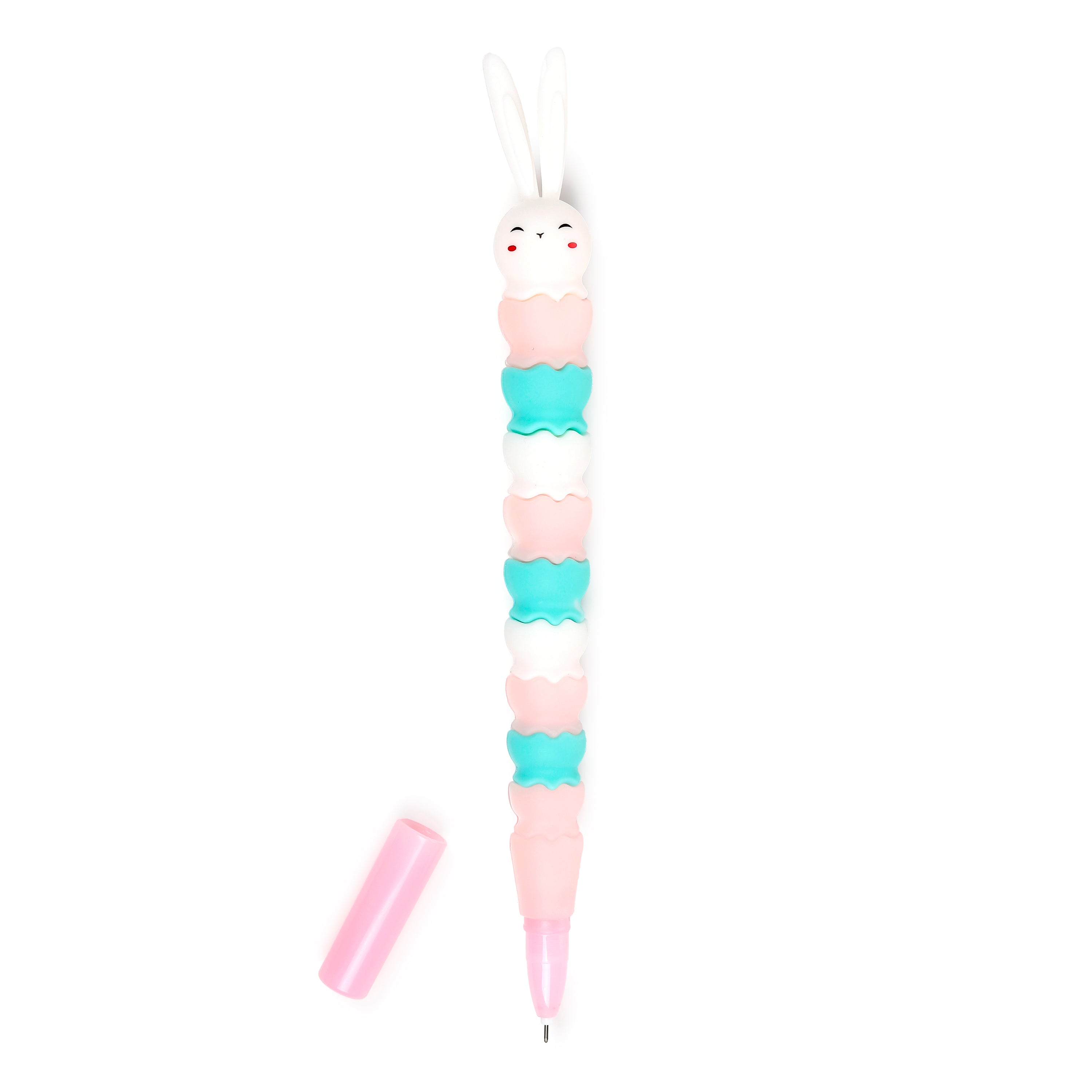 Charming Easter Aesthetic: Each pen in this delightful trio features an adorable bunny rabbit design, complete with long ears, sweet cartoon faces, and beautifully segmented, wavy pastel bodies in shades of pink, blue, purple, turquoise, and white.