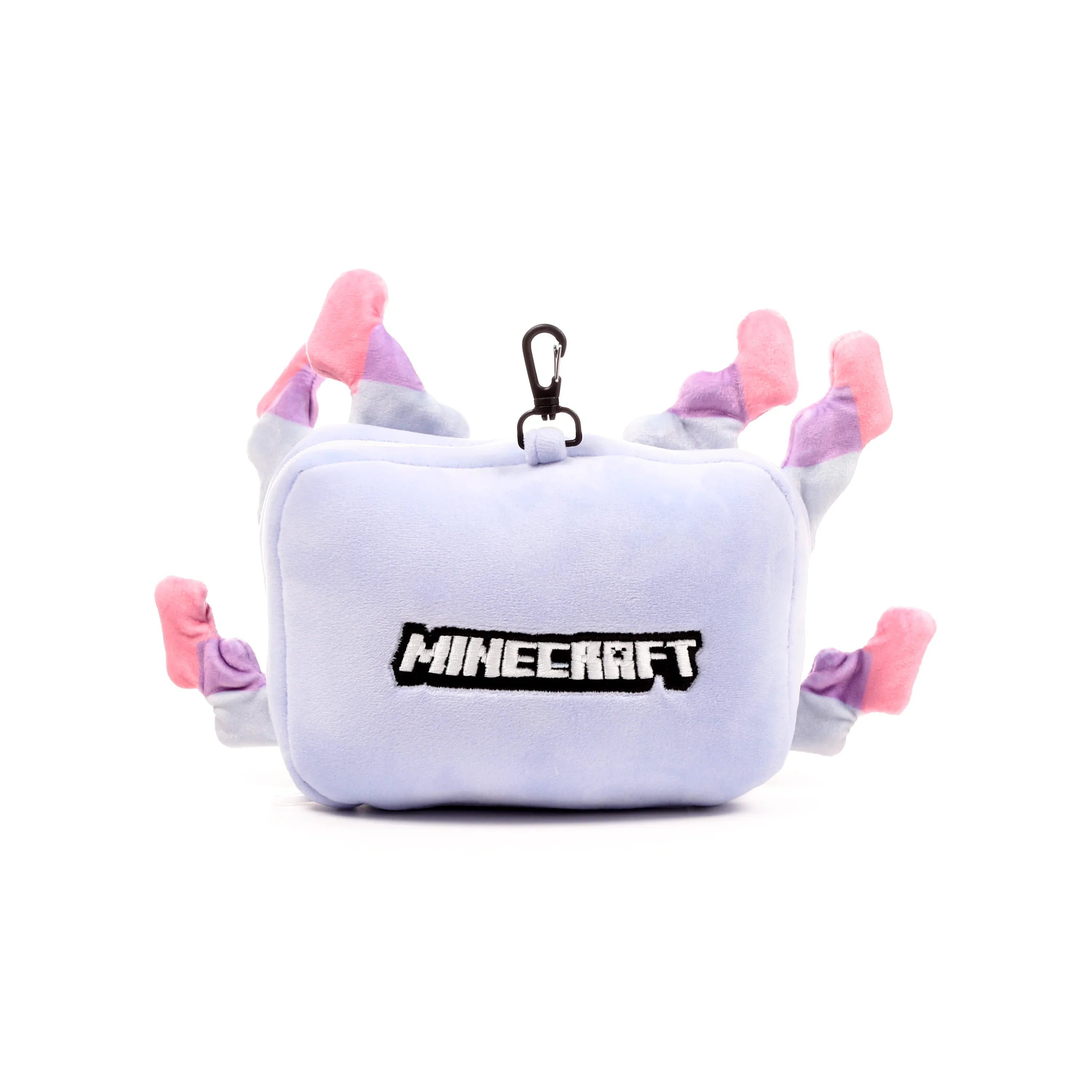 • Iconic Minecraft Design: Features a delightful pixelated design with a soft body, distinctive pink, purple, and white gill-like details, an embroidered pink rectangular mouth, and purple square eyes, all officially licensed and adorned with the 'MINECRAFT' logo.