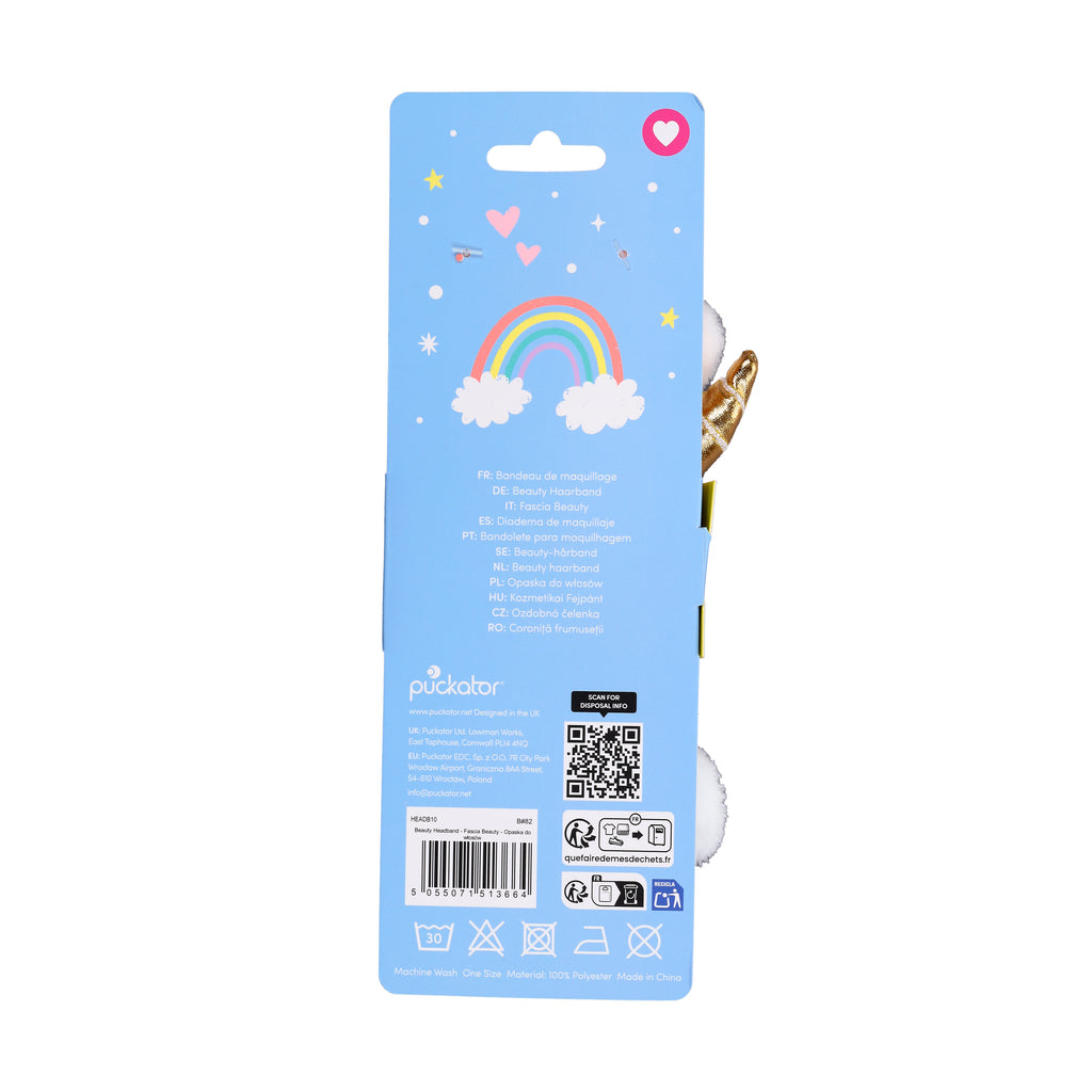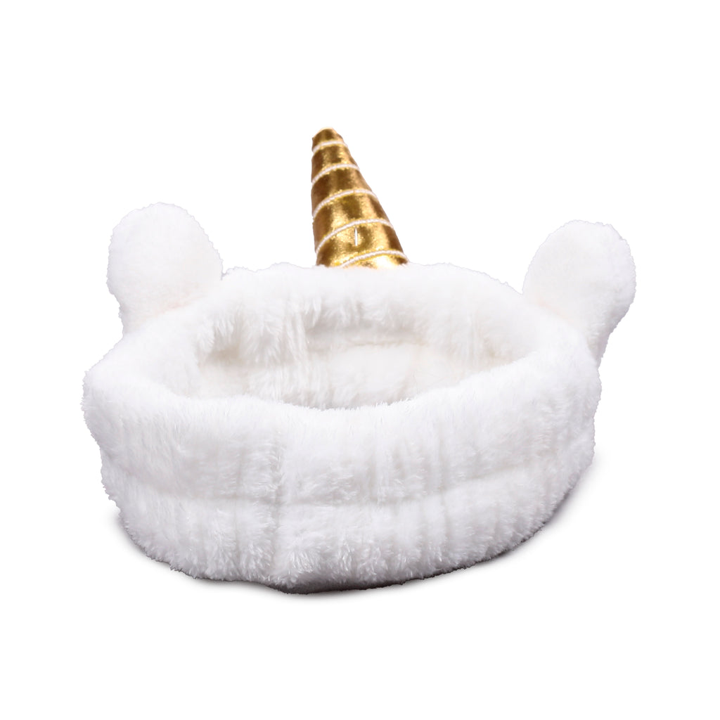 Whimsical Design: Featuring a delightful white plush headband, this charming accessory is adorned with sweet pink inner ears and a sparkling golden horn, making it an irresistible addition to any beauty collection.