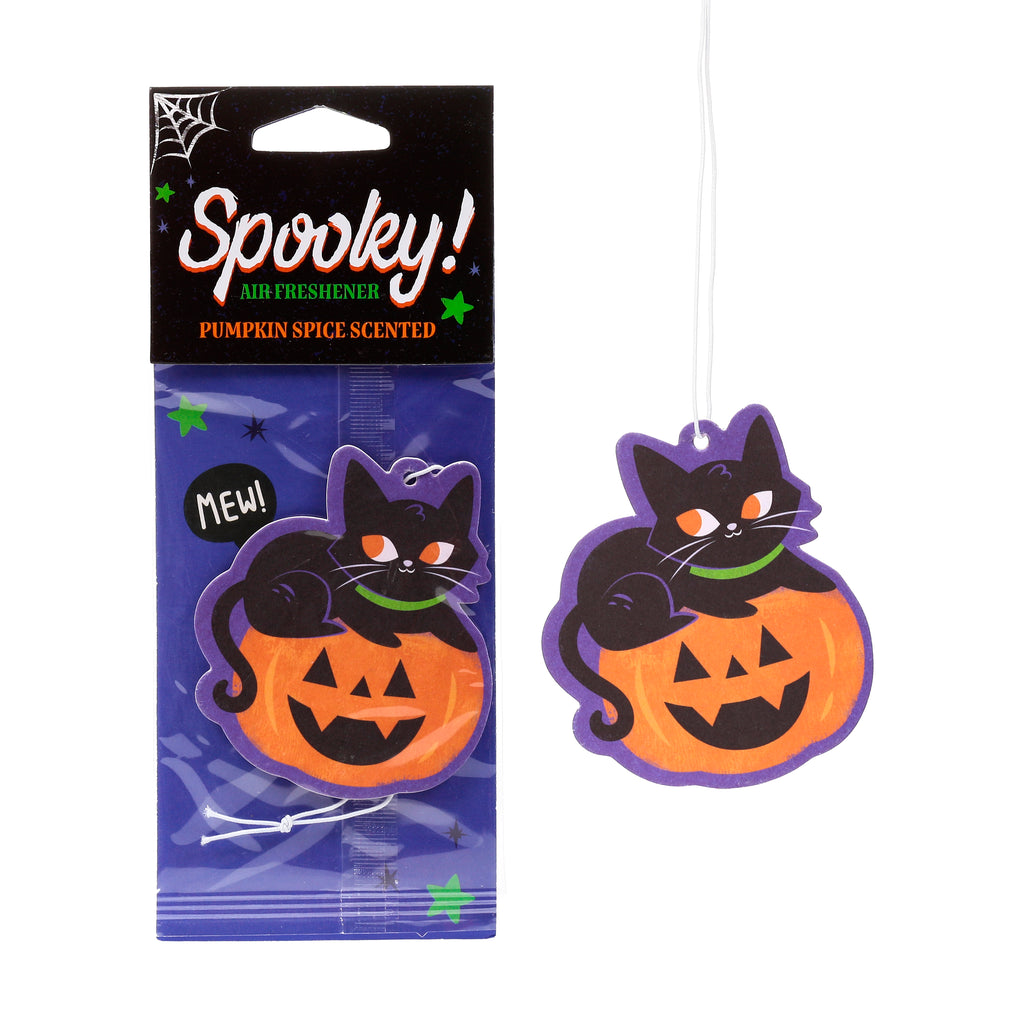 Transform your daily commute into a whimsical autumn adventure with our enchanting Pumpkin Spice Scented Spooky Black Cat & Pumpkin Air Freshener. Designed to infuse your vehicle with the comforting aroma of the season, this delightful accessory adds a touch of playful charm to any car interior.
