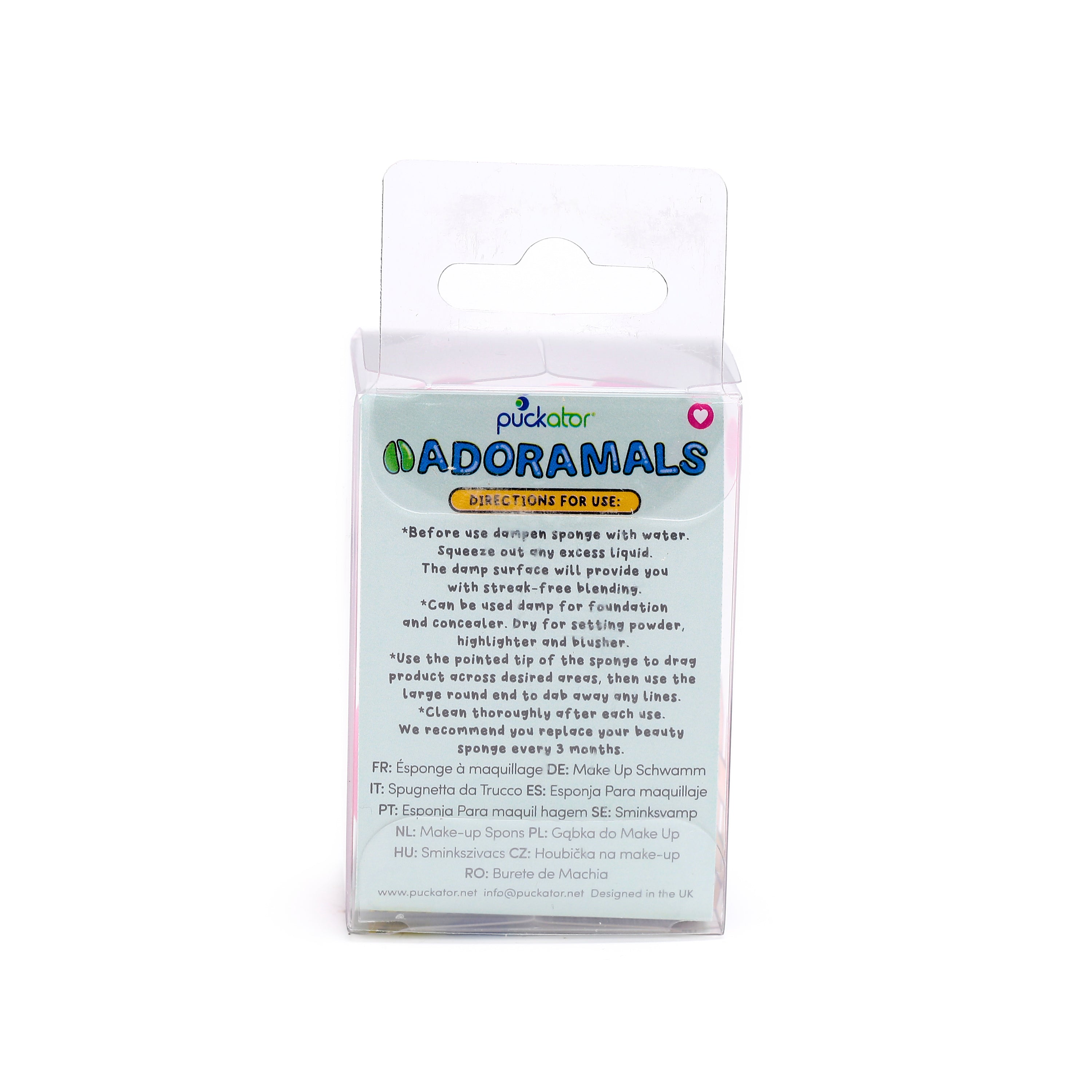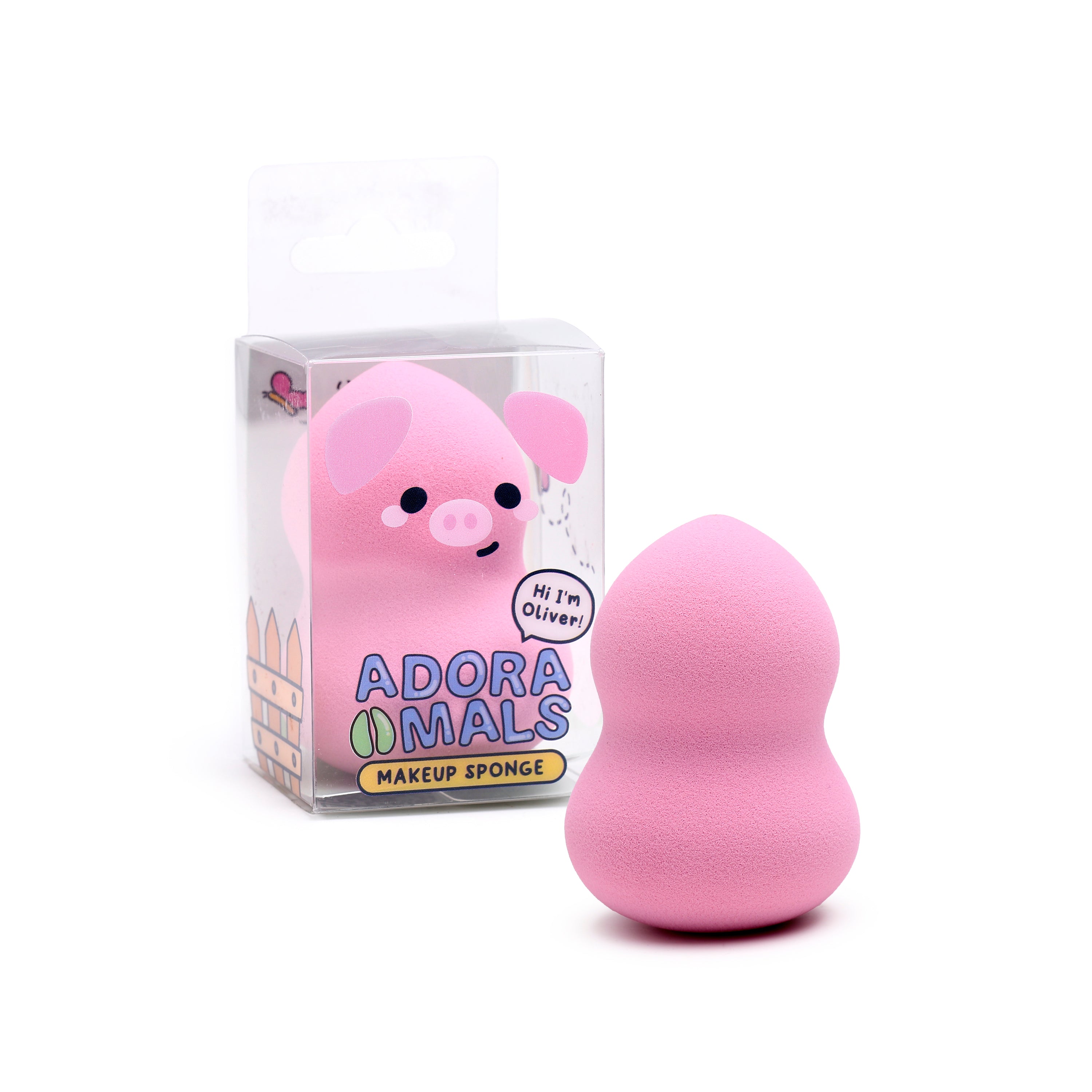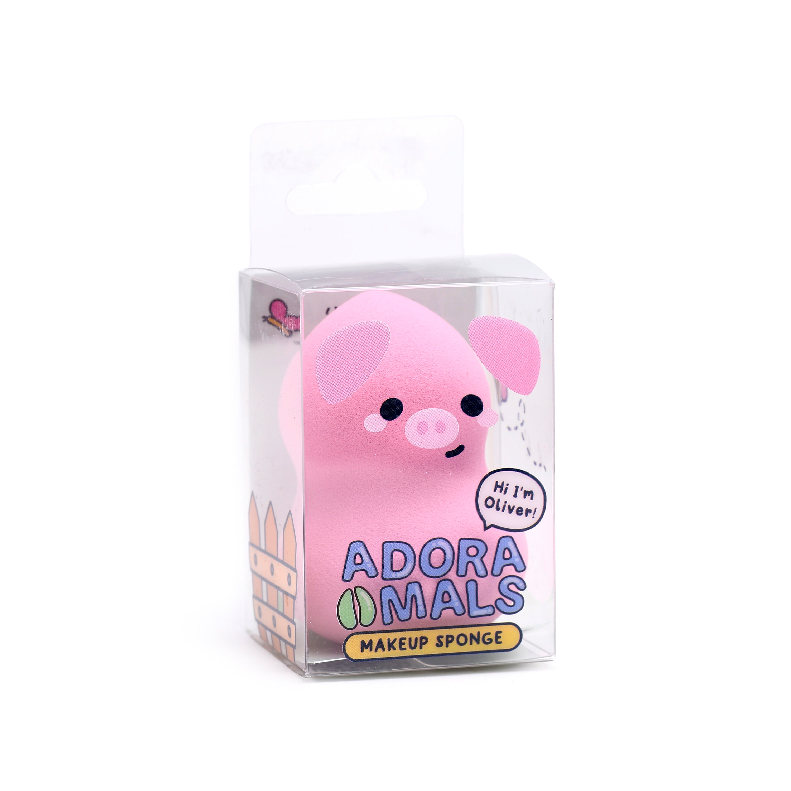 Adoramals Quality: Part of the cherished Adoramals collection, Oliver arrives in clear plastic packaging, clearly labelled with "Adoramals Makeup Sponge" and a friendly "Hi I'm Oliver!" speech bubble, ensuring authenticity and a touch of personality.