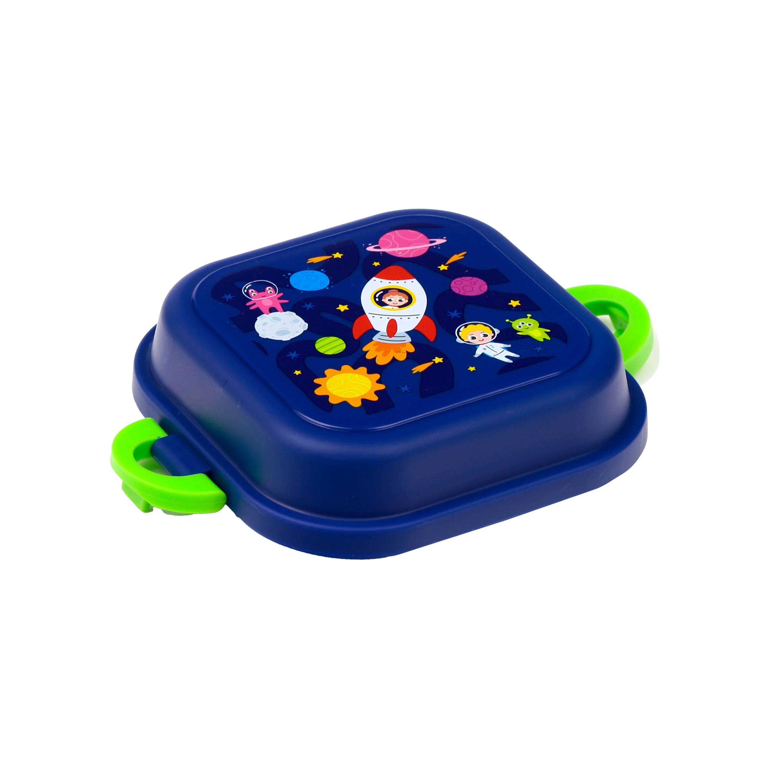 • Adventure-Ready Design: The dark blue lid features a vibrant 'Space Cadets' theme, bursting with colourful illustrations of rockets, child astronauts, friendly aliens, distant planets, twinkling stars, and a beaming sun. This enchanting display is paired with a bright lime green base and matching side clips, creating a visually engaging and fun lunch solution.