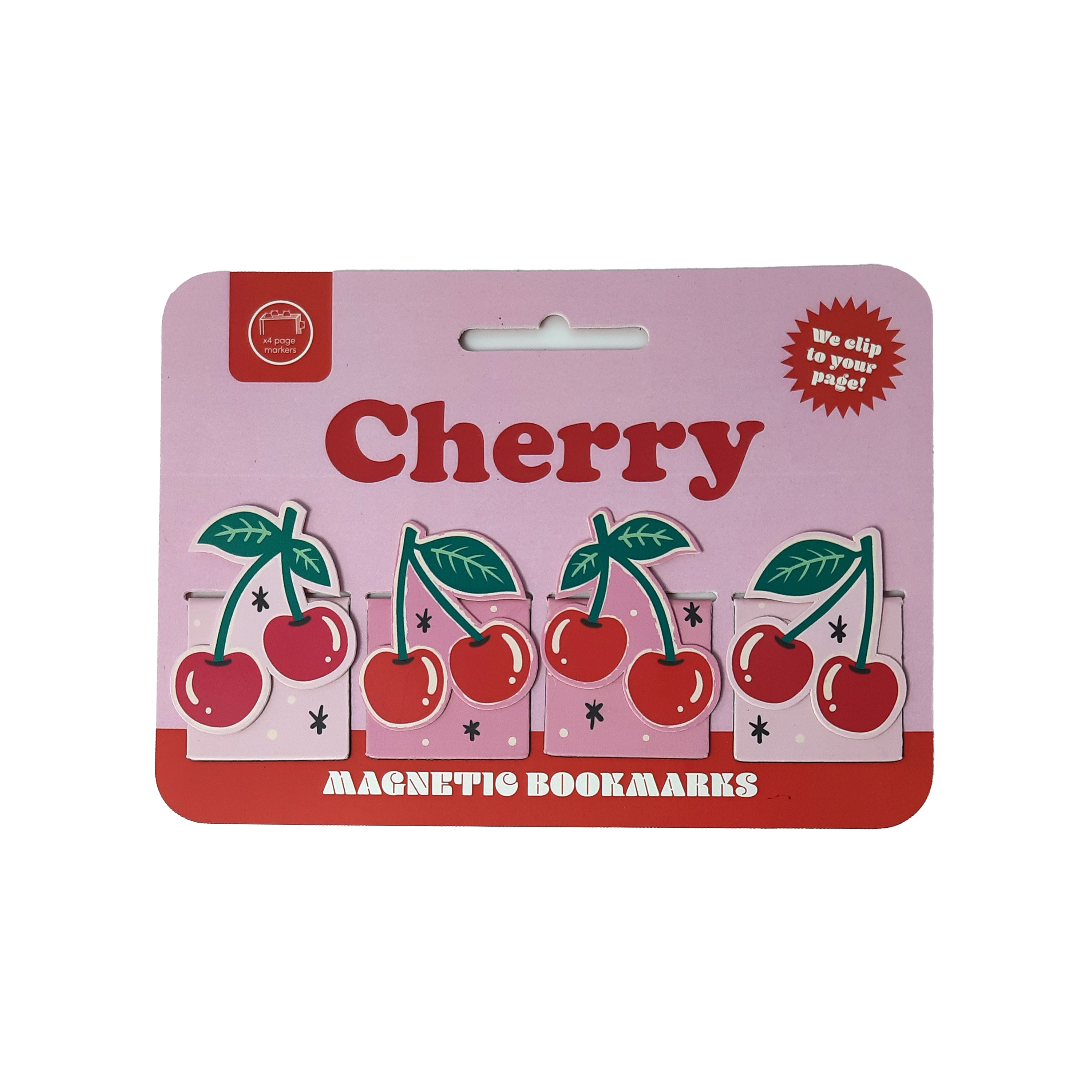Sweet Cherry Aesthetics: This delightful set features four individual magnetic bookmarks, each adorned with a vibrant red cherry design complemented by fresh green leaves, adding a whimsical and refreshing splash of colour to any book.