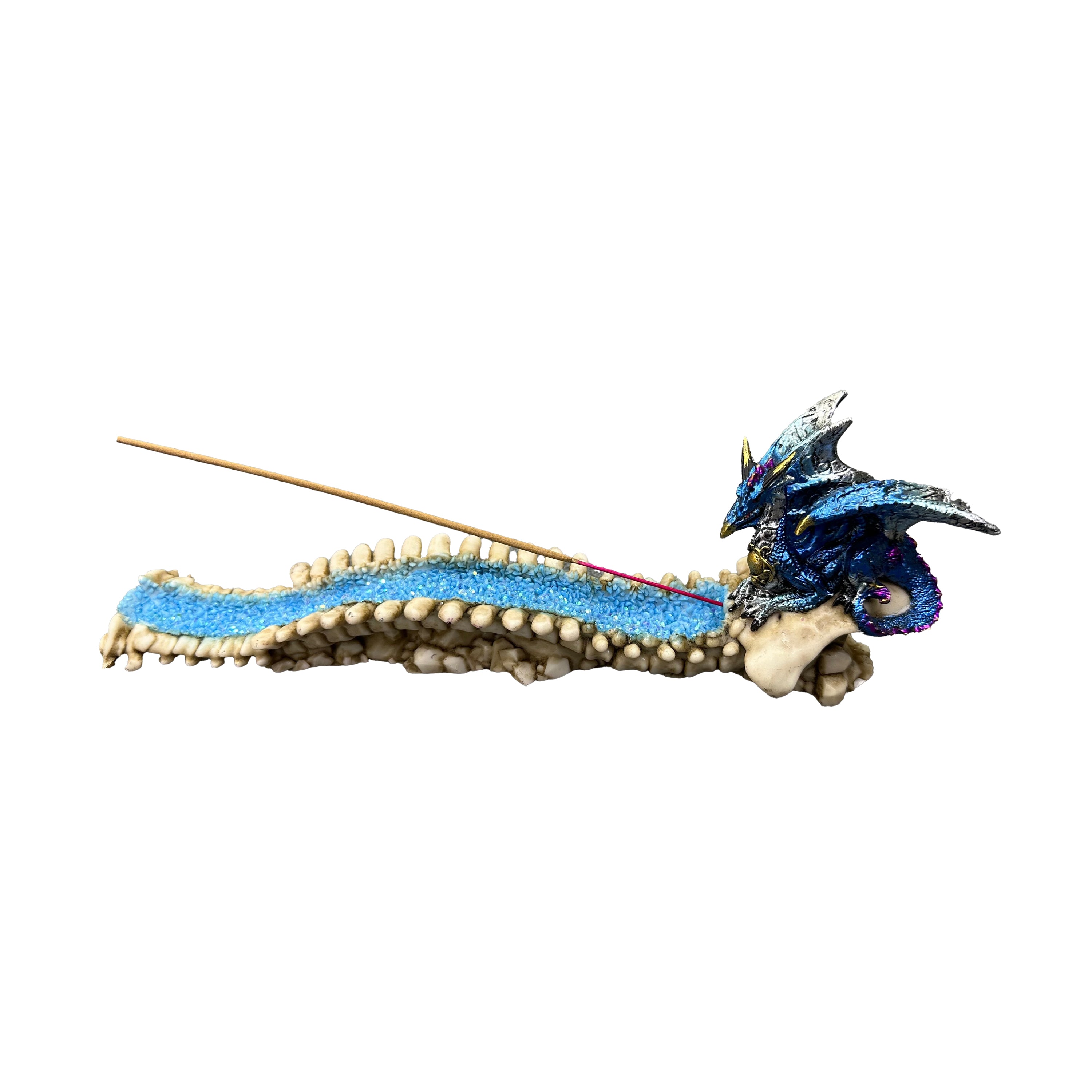• Crystal Lagoon Ambiance: The dragon gracefully cradles your incense stick above a subtly macabre, skeletal-textured base, which hints at the 'Skull' in its name. Below, a mesmerising channel shimmers with bright blue crushed crystals, forming the enchanting 'Crystal Lagoon' that not only looks stunning but also serves as a practical ash catcher.