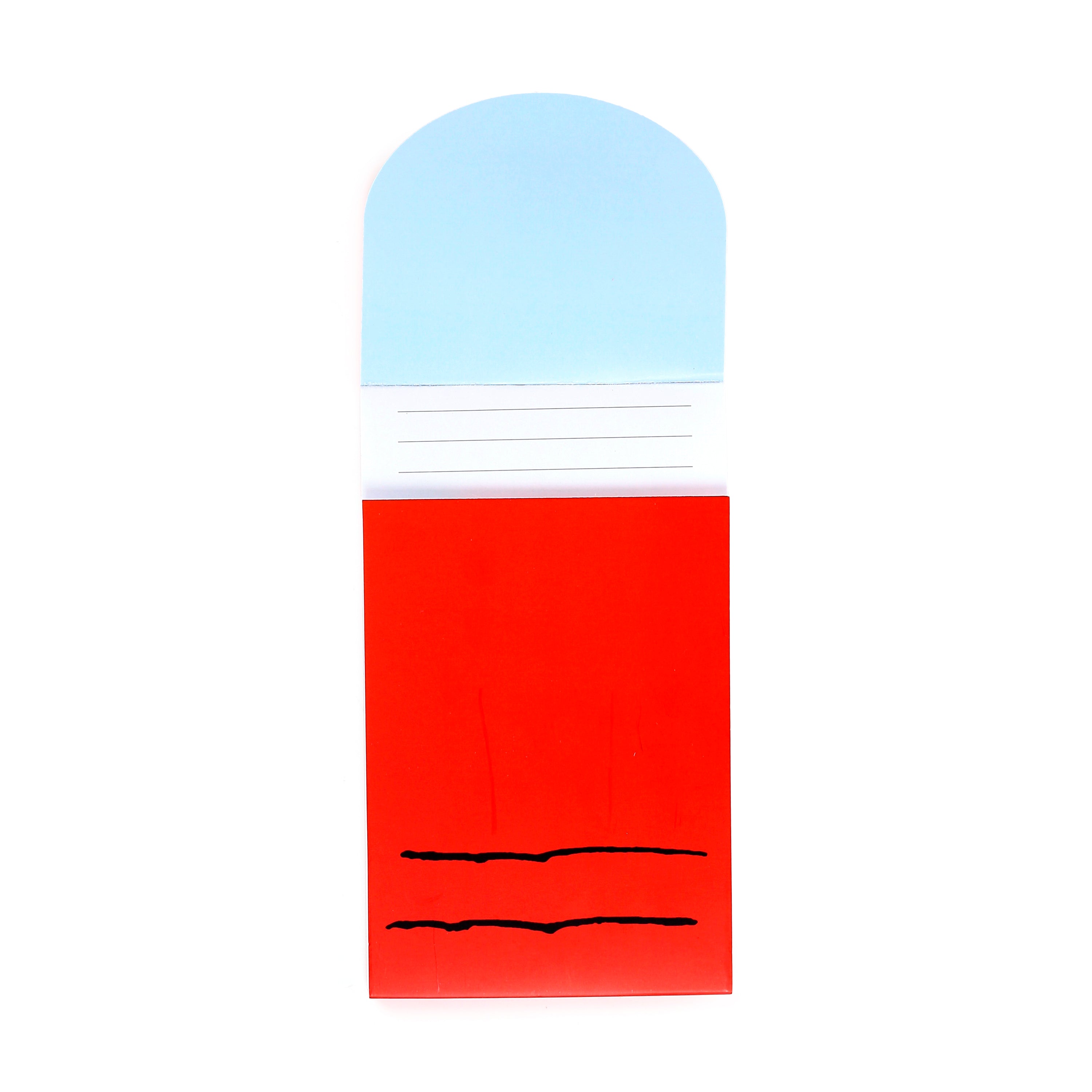 Iconic Character Design: Shaped unmistakably like Snoopy’s iconic red doghouse, this charming memo pad features both Snoopy and the ever-adorable Woodstock peeking playfully from its die-cut top. Its distinctive arched light blue top and red base, complete with two black horizontal markings, make it a true desk-side delight.