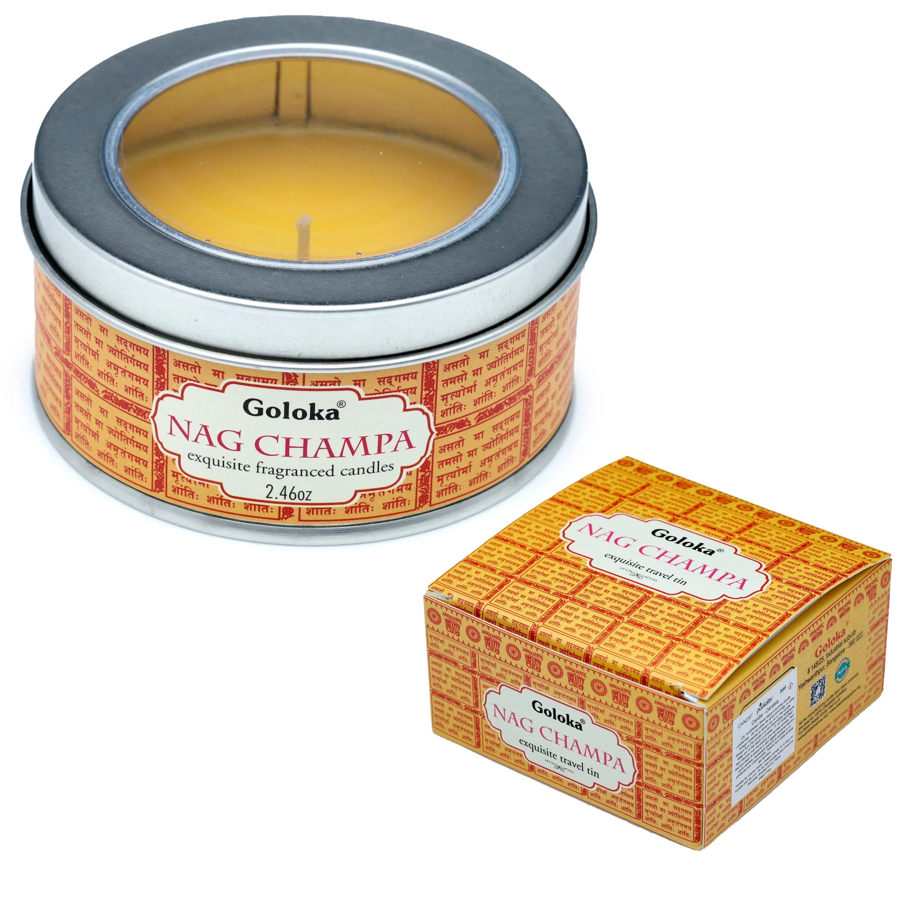 Ignite a journey of sensory delight with the Goloka Nag Champa Wax Candle Tin. Renowned for its distinctive and spiritually uplifting aroma, this exquisite fragranced candle brings the sacred essence of Nag Champa directly into your home, or wherever your travels may take you.