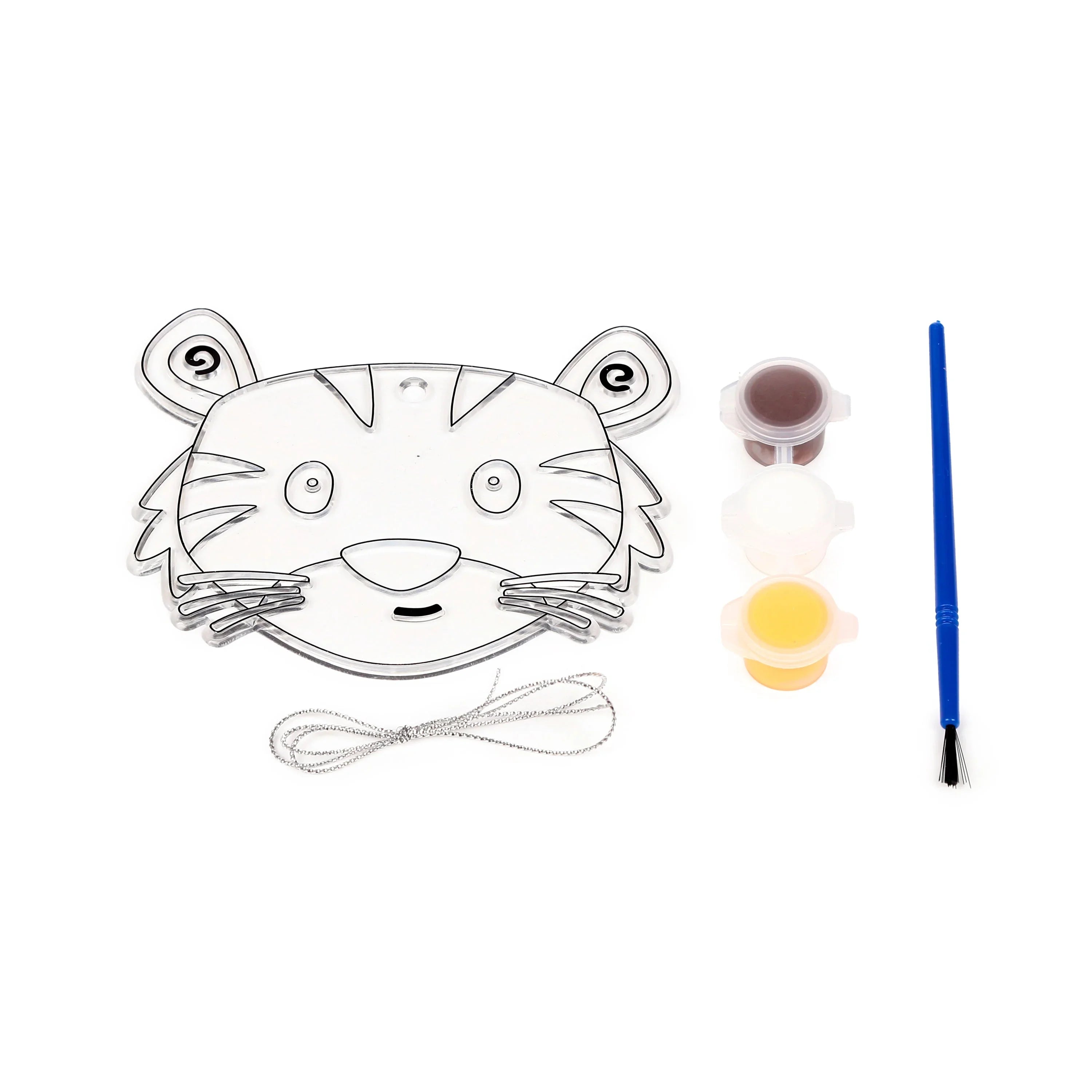 Unleash Creativity: Transform a clear, detailed tiger-shaped blank, complete with distinctive black outlines for its facial features and stripes, into a vibrant piece of art using the included orange, white, and dark brown paints and brush.