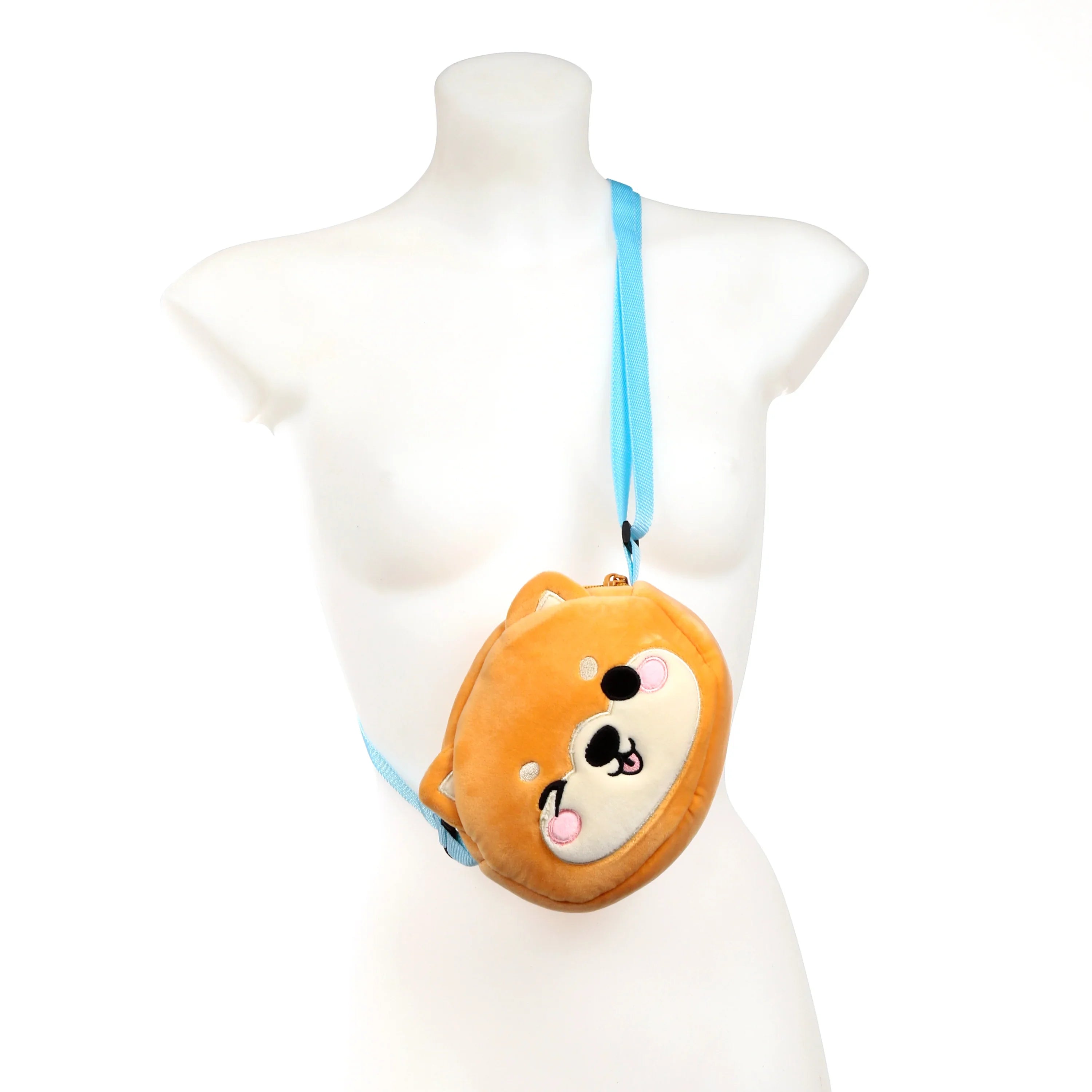 Irresistibly Cute Design: Introducing Shuggs the Shiba Inu, reimagined as an adorable plush crossbody bag in vibrant orange and cream. This charming accessory features a playful winking face and a delightful pink tongue, making it a truly unique statement piece.