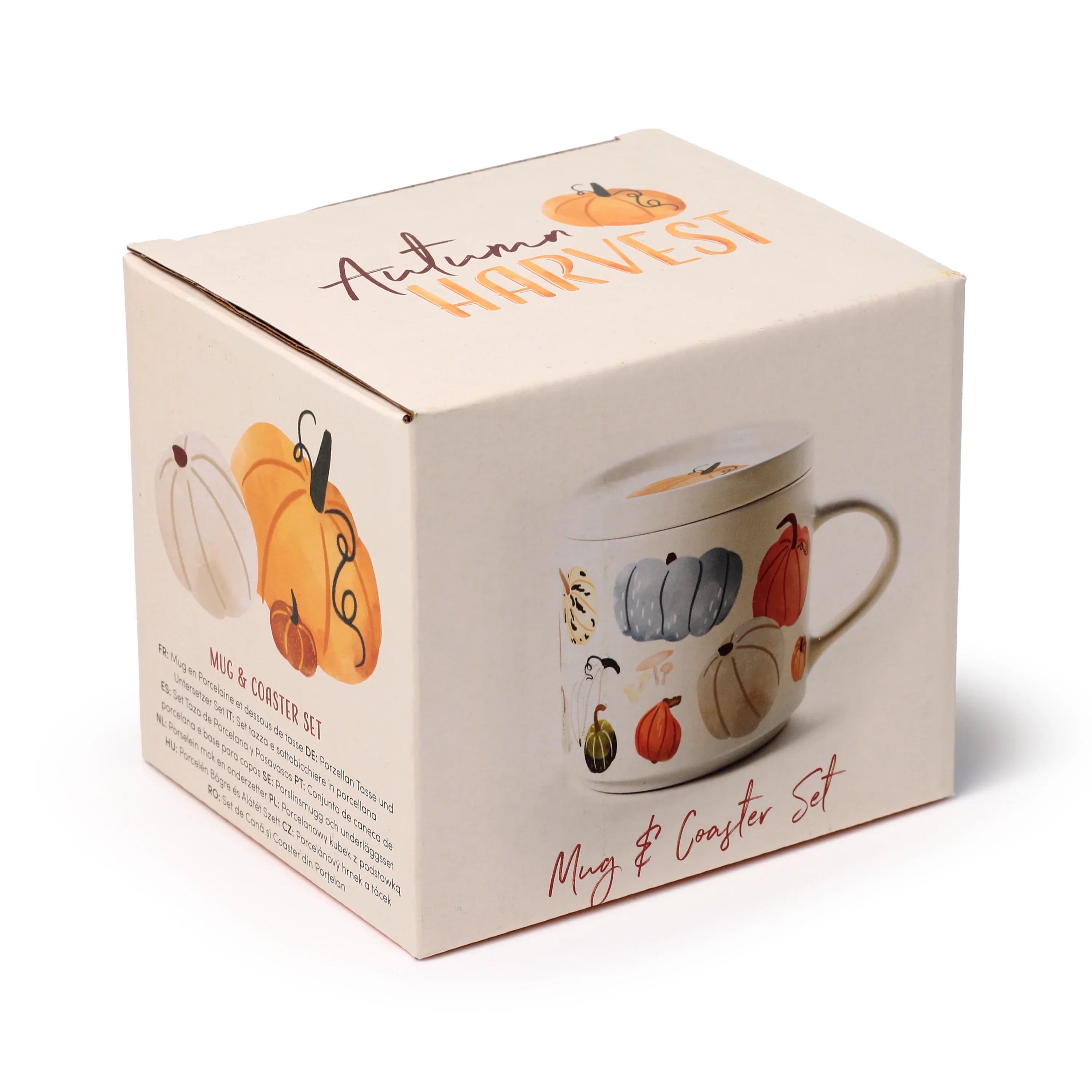 Embrace the enchanting spirit of the season with our delightful Porcelain Mug & Coaster Lid Set, an exquisite addition from the Autumn Harvest range. Crafted to bring warmth and charm to your daily rituals, this set is a celebration of autumnal beauty, perfect for cosying up with your favourite hot beverage.