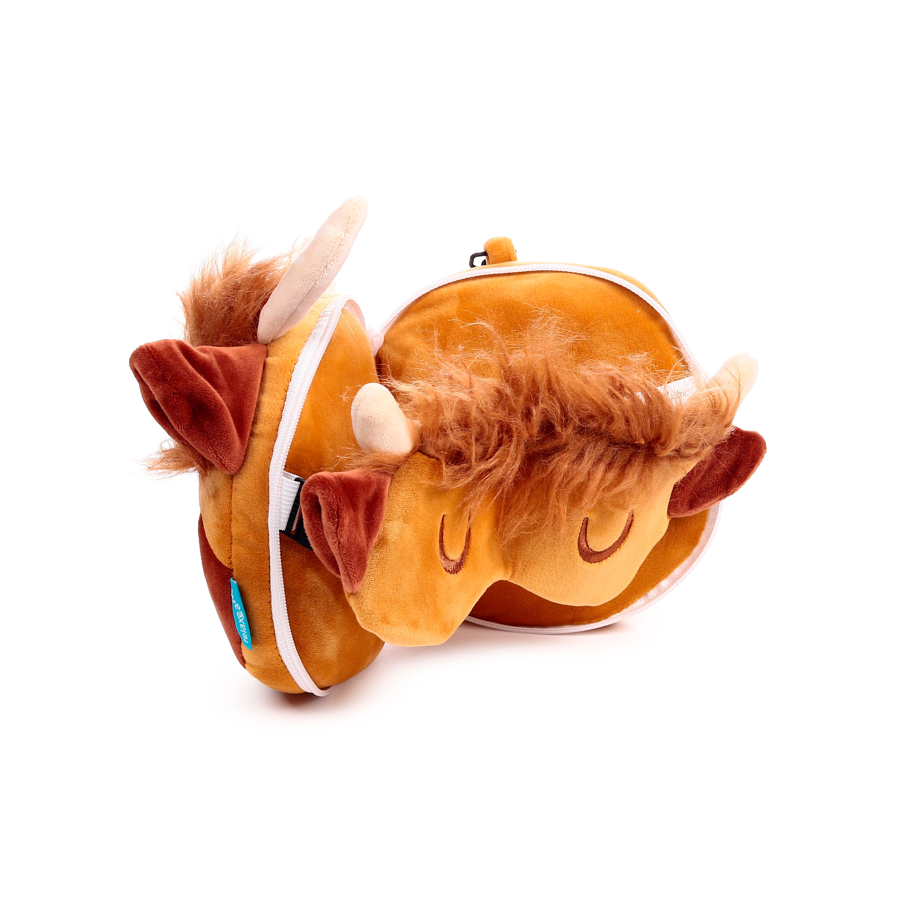 • Unrivalled Comfort & Charm: Embrace the serene comfort of our Relaxeazzz Highland Coo travel pillow and eye mask. Crafted from ultra-soft, shaggy ginger-brown plush fabric, this adorable coo features charming cream-coloured horns and sweetly embroidered sleepy eyes, ensuring you look as good as you feel.