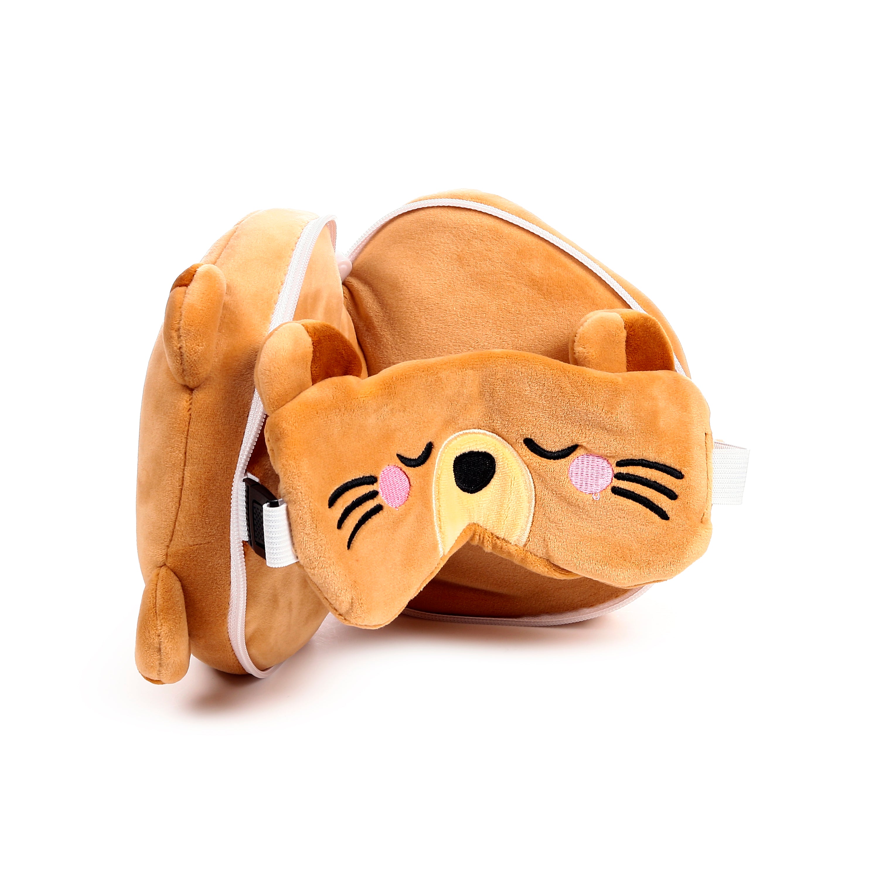 Perfect Darkness & Easy Care: The coordinating eye mask features charming closed eyes and an adjustable white strap for a snug, light-blocking fit, ensuring uninterrupted rest. And when your adventures are over, simply pop Mimi into the washing machine at 30°C for effortless cleaning, ensuring she’s always fresh for your next trip.