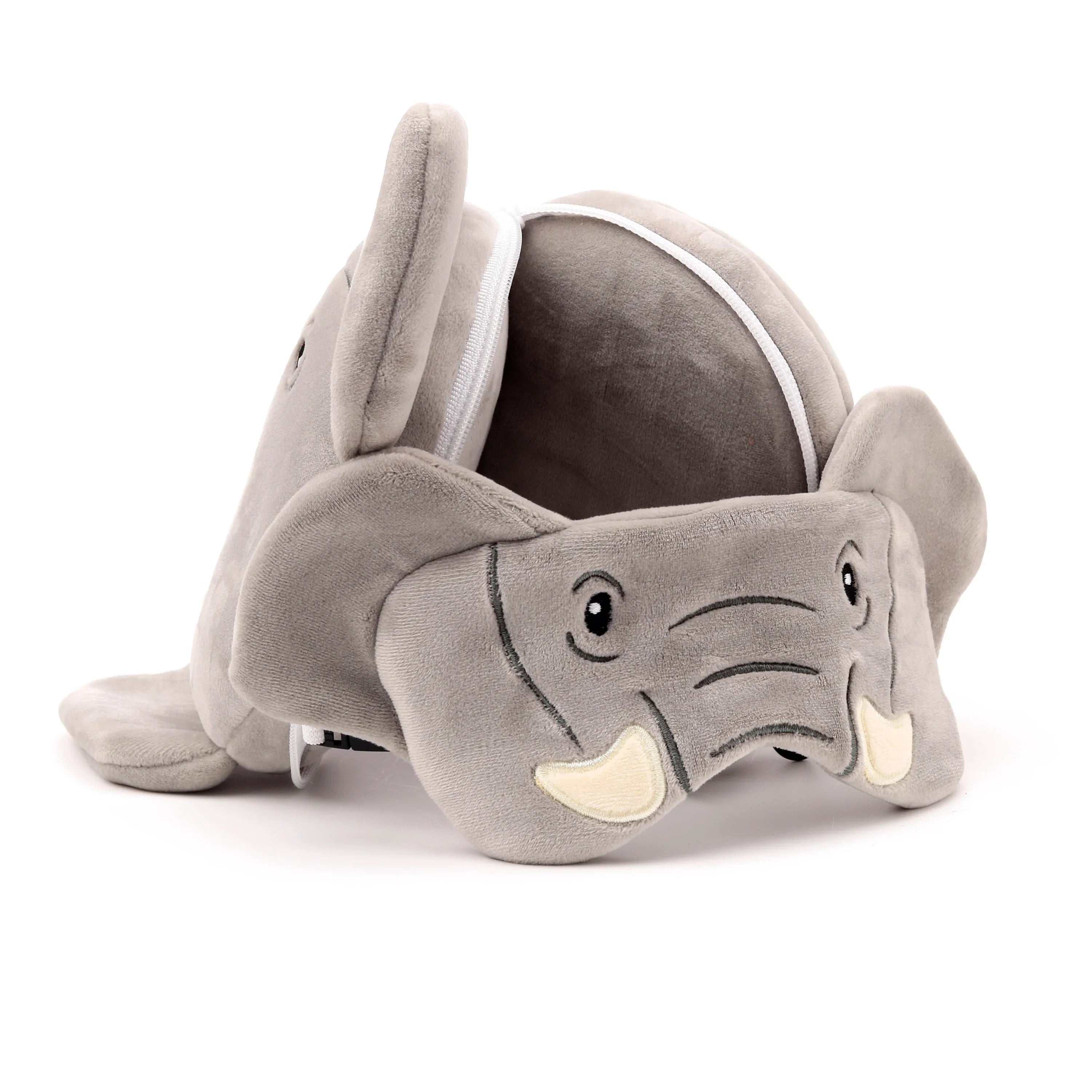 • Supreme Comfort & Charming Design: Crafted from a luxurious blend of 95% polyester and 5% spandex, the light grey plush fabric is incredibly soft against the skin. The friendly elephant boasts beautifully embroidered eyes, a playful trunk, and distinctive white tusks, all combining to make your journey more joyful and restful.