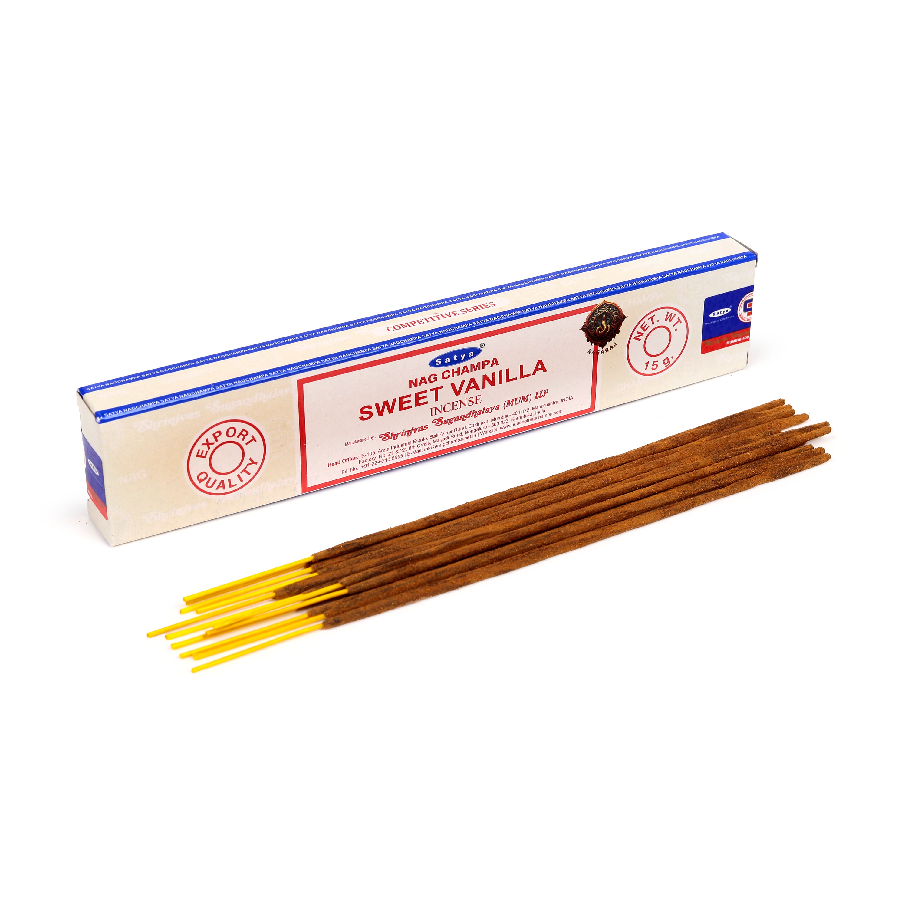Incense Fragrances: Satya Nag Champa, Satya Super Hit, Satya Sandalwood, Satya Palo Santo, Satya Dragon's Blood, Satya Sweet Vanilla, Satya French Lavender.