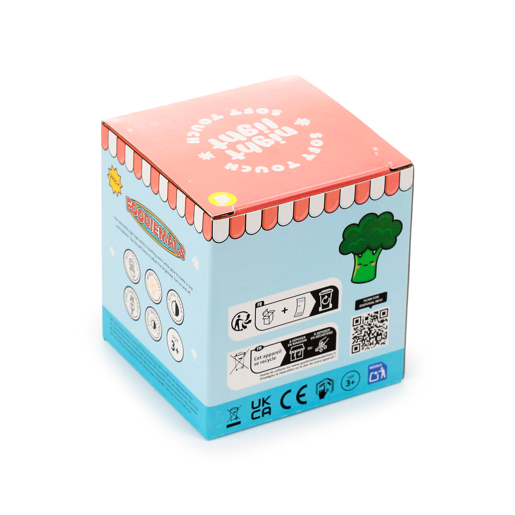 Charming Foodiemals Design: Embrace the unique appeal of our friendly aubergine character from the beloved Foodiemals collection. Crafted from soft, tactile silicone and durable plastic, it features a gentle smiling face and cute, small feet, offering a playful aesthetic that brightens any room, even before it’s switched on.